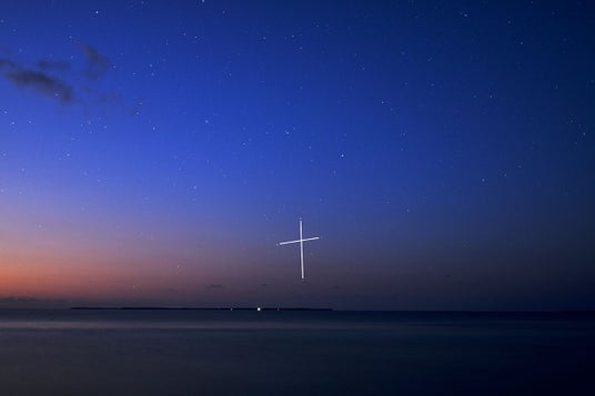 水平線近くに見える南十字星(ガイドラインを記載)