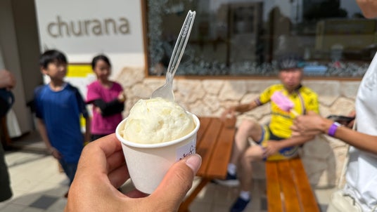 山から下りてきて市街地のアイスクリーム屋で一息