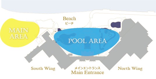 ◆ 神秘的な光が神殿へと導くプールエリア|約10,000平米