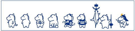 象徴性:与那国馬がモチーフ。ずんぐりむっくり体型。基本はいつも西向き。(世界を見ている??)