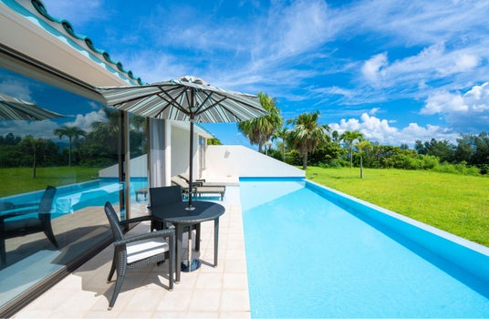雄大な東シナ海を望む絶景の丘に佇むプライベートヴィラでの滞在と、爽快なゴルフプレーを、専用送迎でシームレスにつなぐ上質なリゾート体験をご提案いたします。