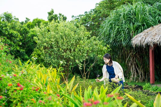 このプログラムは、古くから島に根付いてきた命草の文化に触れ、心と身体を癒します。命草は、かつて医者のいなかった時代に、島民の健康を守るため薬や食材として使用されてきました。滞在中の2日目には、星のや竹富島内の畑へ足を運び、命草の種類や特徴を学びながら収穫をする「畑あそび」を体験し、摘みたての香りや土の匂いに癒されながら、竹富島の畑文化や伝統作物を学びます。その後は、島民の暮らしに倣い、ひと休みする「十時茶(じゅうじちゃー)」で、冬は八重山特有のスパイス「ピーヤシ(島胡椒)」、春はひときわ香りを放つ「月桃」を使用したお茶とお菓子を味わいます。滞在中には、オリジナル「命草散策マップ」を片手に島の集落内を散策するのもおすすめです。フーチバーや長命草などが味わえる島の食事処を訪れて、土地に根付く命草についてや、薬としても重宝された当時の文化に触れることができます。