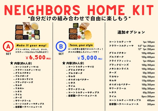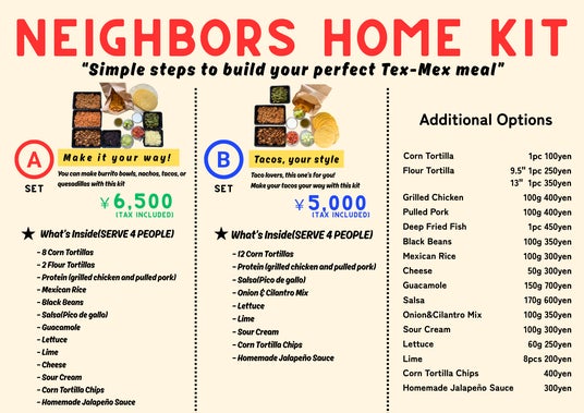 NEIGHBORSのメニューがほぼ自宅でできちゃう!?タコスだけじゃなくブリトーやケサディーヤ、ブリトーボウルまで作れちゃう完璧TEX-MEXセット!自分好みのカスタマイズで食べ方は無限大です!