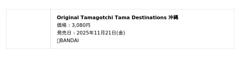 たまごっち公式ショップ「たまごっちのおみせ」が沖縄初出店です。オープン時には、たまごっちのおみせ 沖縄スペシャルエディションの「Original Tamagotchi Tama Destinations 沖縄」のほか、たまごっちの関連アイテムを展開します。商品ラインアップは随時追加予定です。