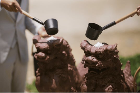 新たな旅立ちを迎えるおふたりを祝福するため、当リゾートでは琉球に受け継がれてきた神聖な儀式をご用意しています。「シーサー覚醒の儀式」では、幸せと繁栄を招き、不運を払い除けると信じられてきた守護獣シーサーの頭に、塩、水、泡盛をそっと注ぎ入れます。