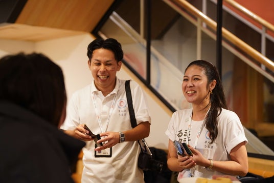 後半の交流会では、市職員も「まんまうるま」ロゴ入りのユニフォームを着用し、来場者と垣根のない「ラフなコミュニケーション」を展開しました。