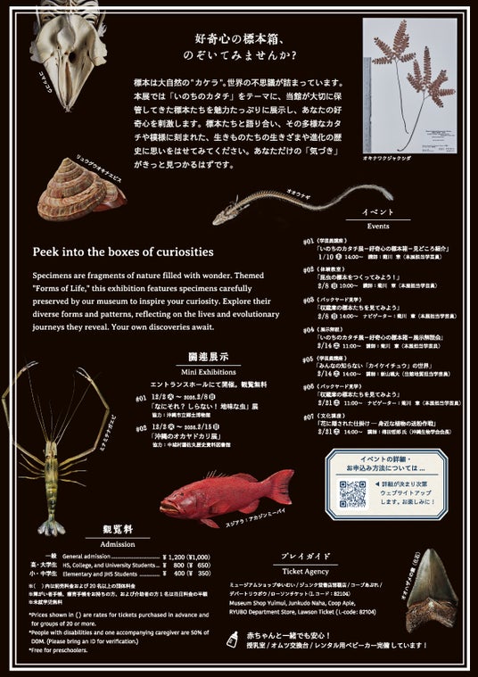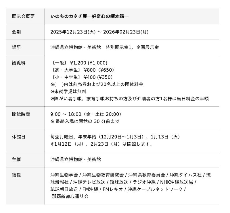沖縄県立博物館・美術館(おきみゅー)では、いのちのカタチ展―好奇心の標本箱―(主催:沖縄県立博物館・美術館)を開催いたします。