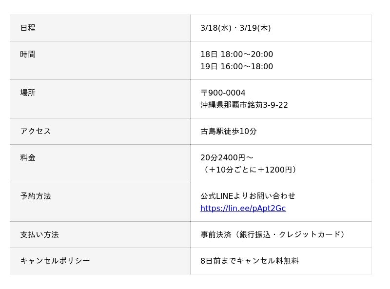 【占い師養成CAMP那覇校】説明会と対面鑑定のお知らせ